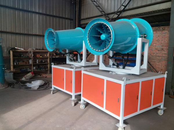 除尘雾炮机-喷雾机主要关键部件包括: 1、除尘喷雾机(雾炮机)的风机是设备的关键,风机采用优质钢板经激光切割机下料,滚筒机卷管翻边、焊接成型,安装轴流风机专用电机和铝风扇叶片。 2、雾化喷嘴的材质选择不锈钢,通过水高速撞击金属的能量,使喷嘴前端的独特设备高频震荡,把雾化的液体二次雾化,从而产生更小的